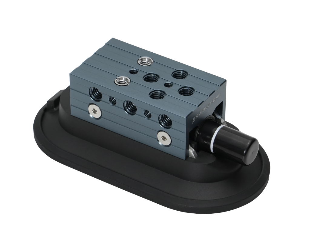 Designed for professional film and video production, this suction mount features a compact and durable aluminum cheese block mounted on a strong vacuum suction base. The block features multiple 3/8” and 1/4” threaded holes, allowing flexible mounting for a wide range of cameras, lights, magic arms, and other grip accessories.